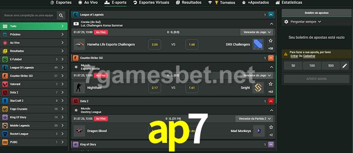 O ap7 oferece uma grande seleção de opções de apostas em e-sports com probabilidades competitivas